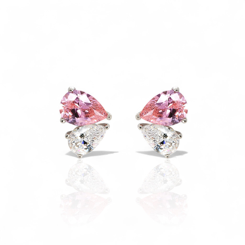 ARETES AURORA DOBLE GOTA ROSA Y CRISTAL ZIRCONIAS PLATA FINA