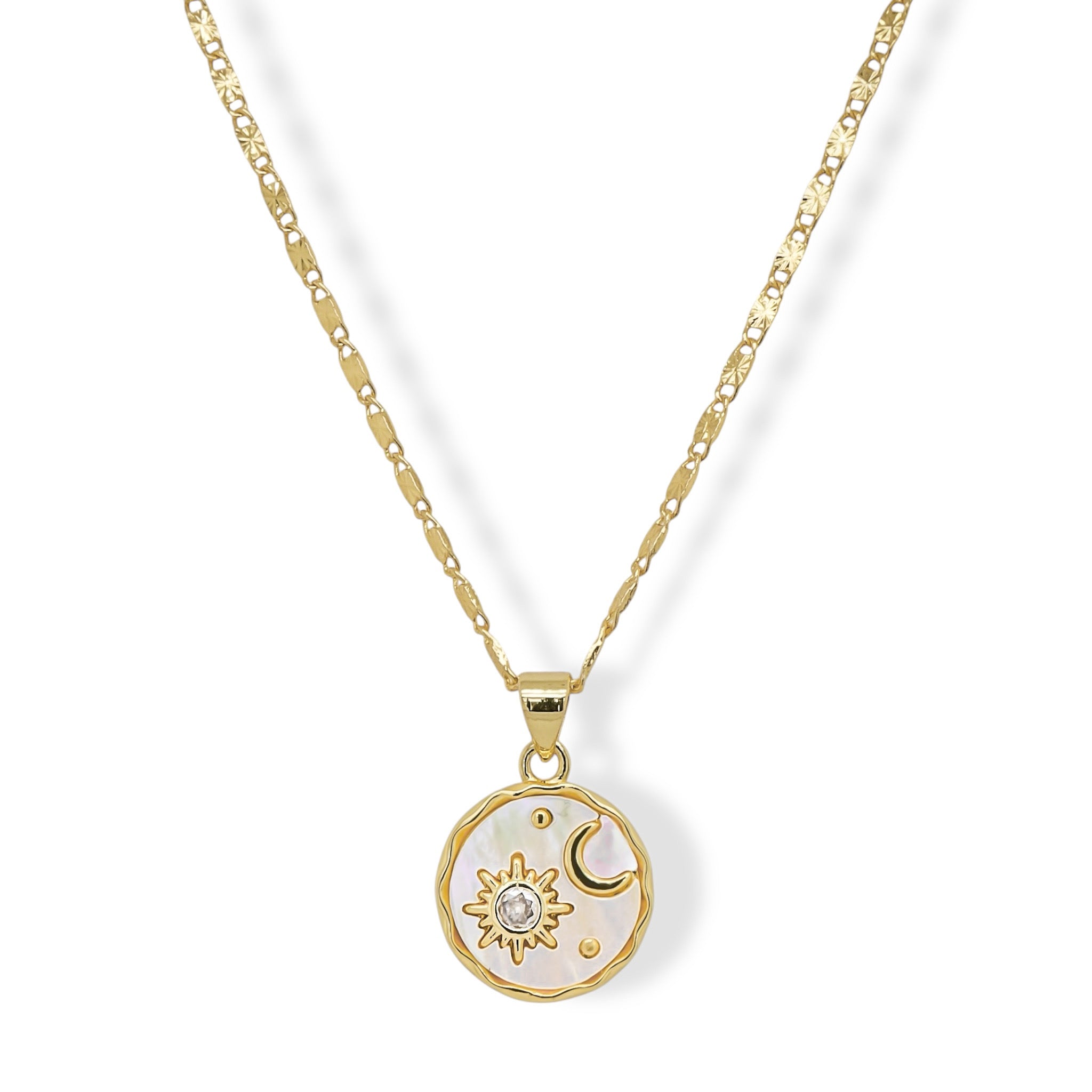 CADENA MEDALLA SOL Y LUNA MADRE PERLA