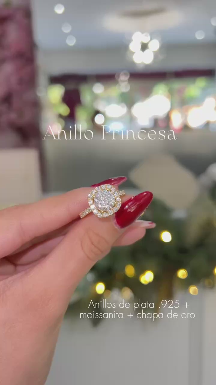 ANILLO PRINCESA COMPROMISO MOISSANITA PLATA FINA CON CHAPA DE ORO