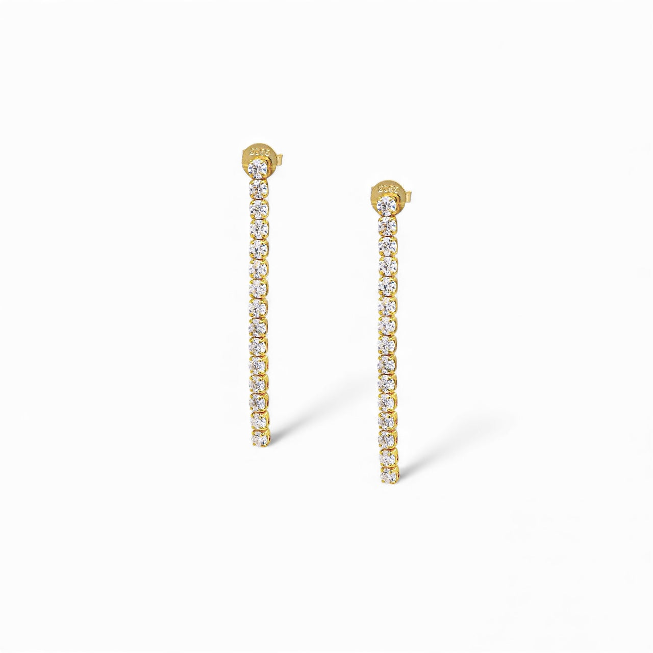 ARETES MILÁN LARGOS MOISSANITA PLATA FINA CON CHAPA DE ORO
