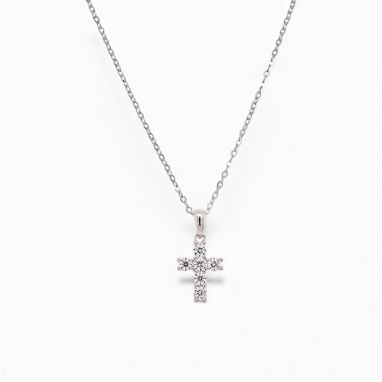 Una cruz delicada en plata fina con Moissanitas que brillan con luz propia. Minimalista, elegante y perfecta para el día a día.