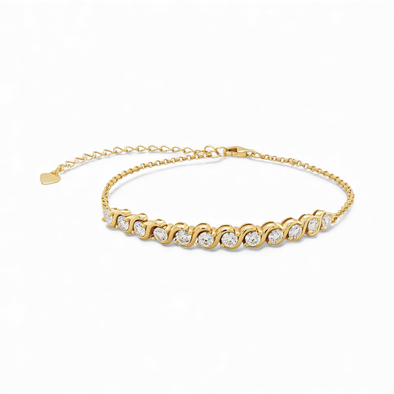 La pulsera Mariela es ese toque de brillo elegante que transforma cualquier outfit. Está elaborada en plata fina .925 chapada en oro y engarzada con Moissanitas, una de las piedras con mayor refracción de luz en el mundo—su destello supera incluso al del diamante ✨💎