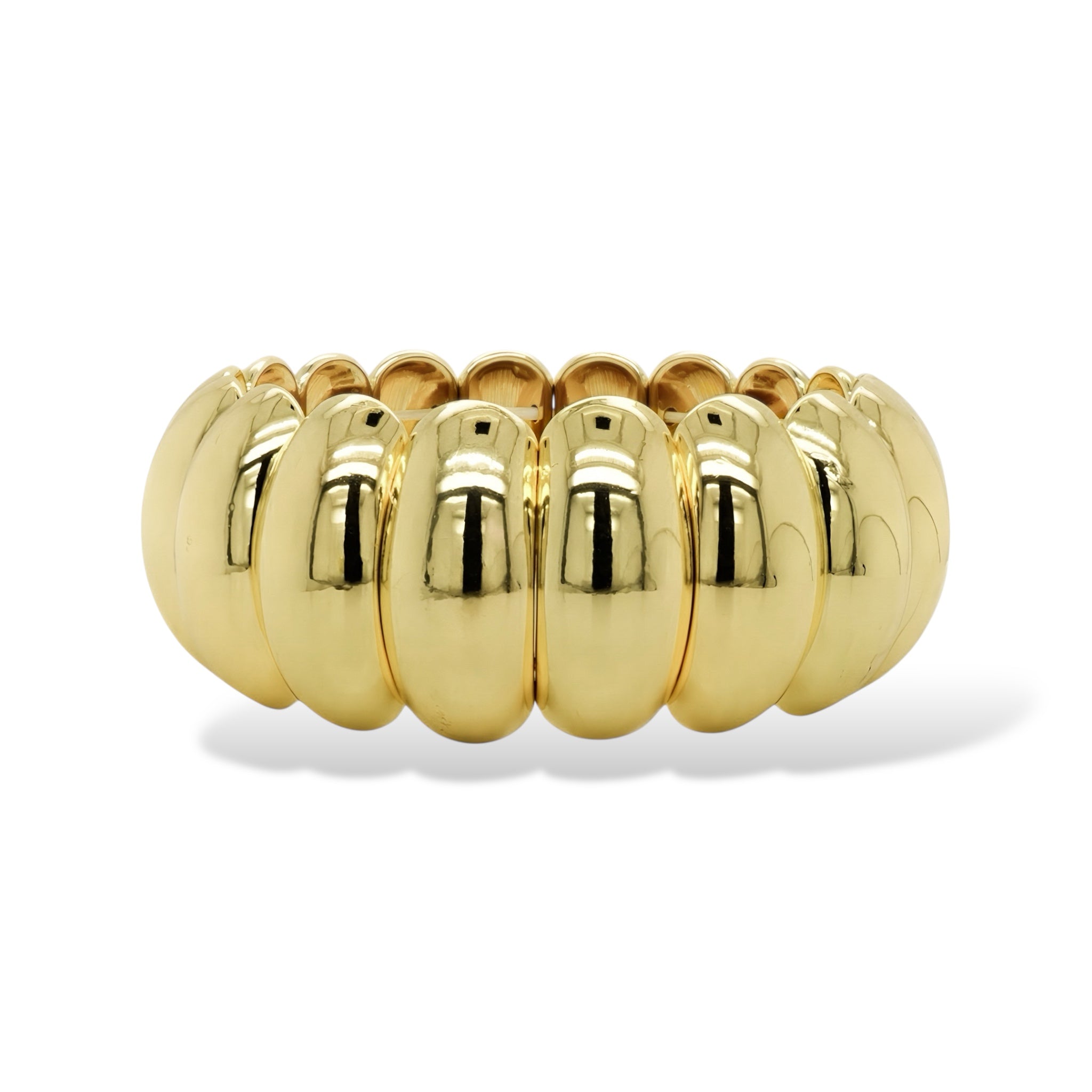 ¡La pieza bold que transformará cualquier look! Su diseño voluminoso en chapa de oro refleja fuerza, estilo y mucha actitud. 💫 Ideal para combinar con tus pulseras finas o usar sola como protagonista — porque hay días en los que un solo accesorio basta para brillar ✨