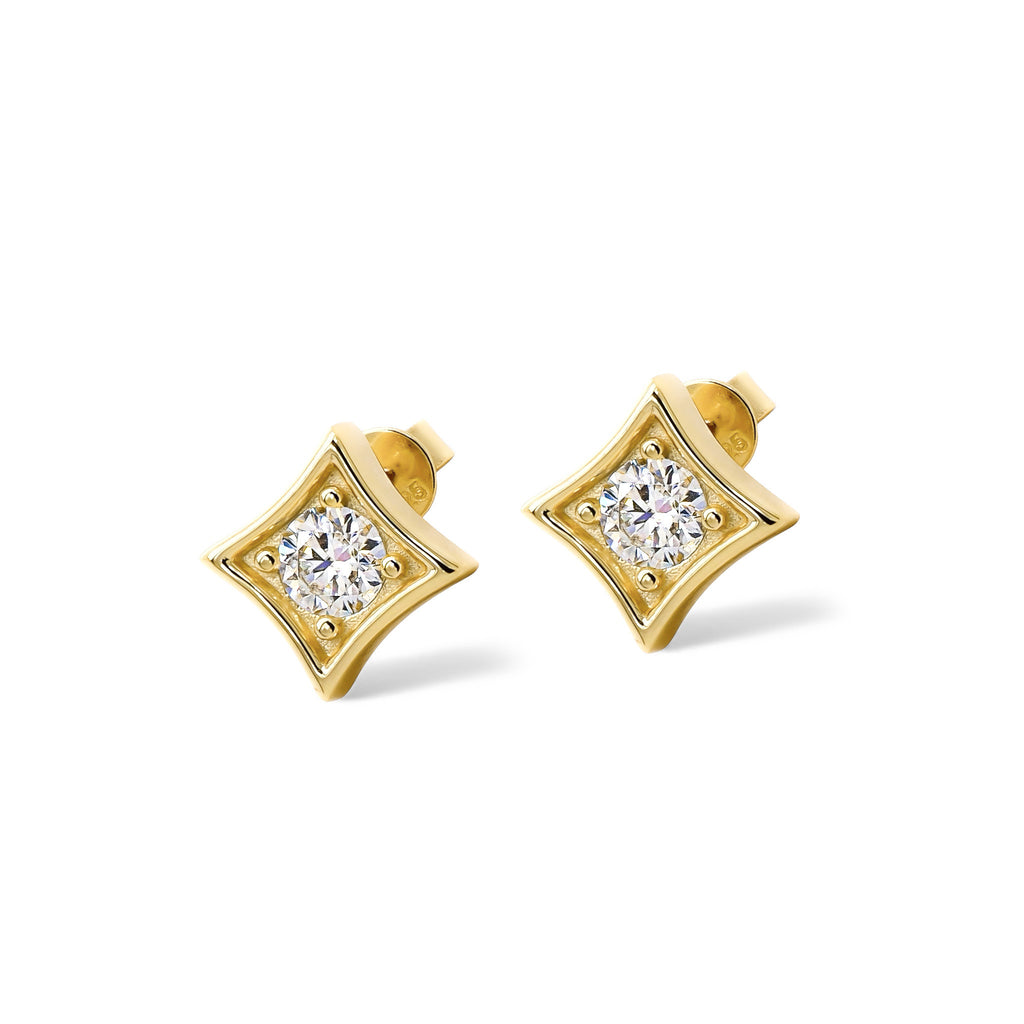 EMERALD STUDS WITH DIAMON ZIRCONIA IN FINE SILVER
