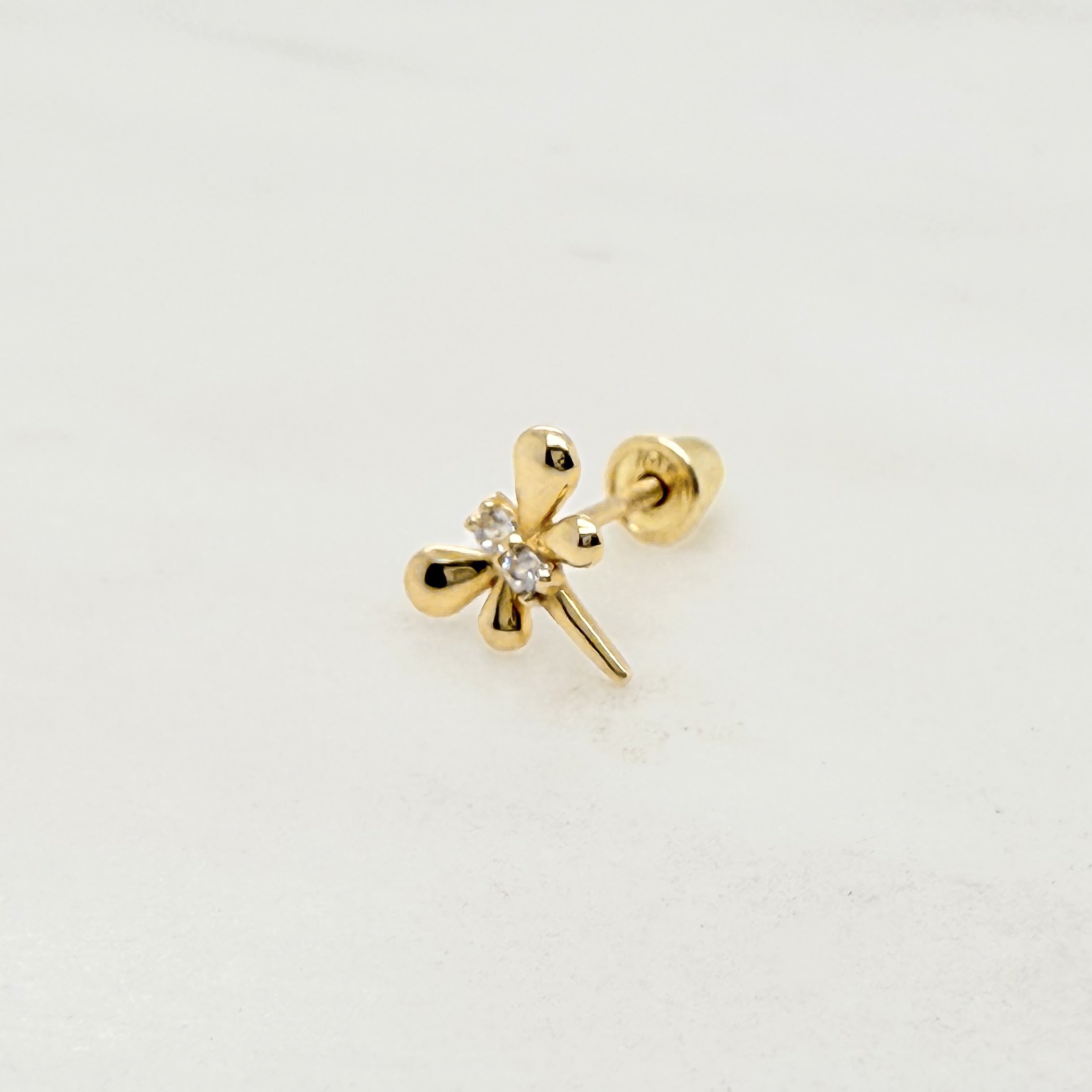 BROQUEL LIBÉLULA 2 ZIRCONIAS ORO 10K