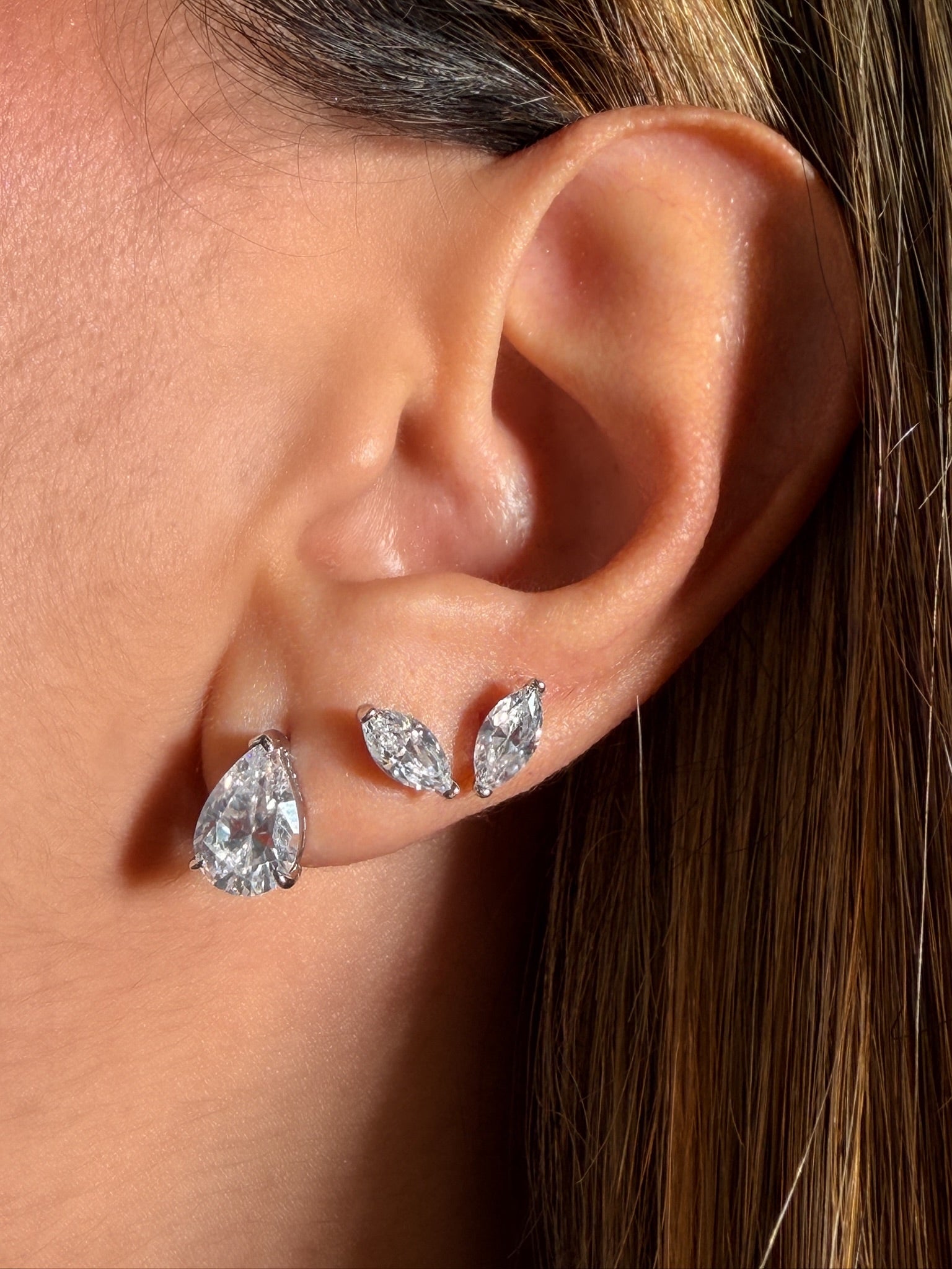 Nuestros Aretes Diamante Mini son una pieza delicada y versátil que aporta un brillo elegante y sutil. Su zirconia premium en corte marquise refleja la luz de forma espectacular, creando un efecto sofisticado incluso en un tamaño discreto.