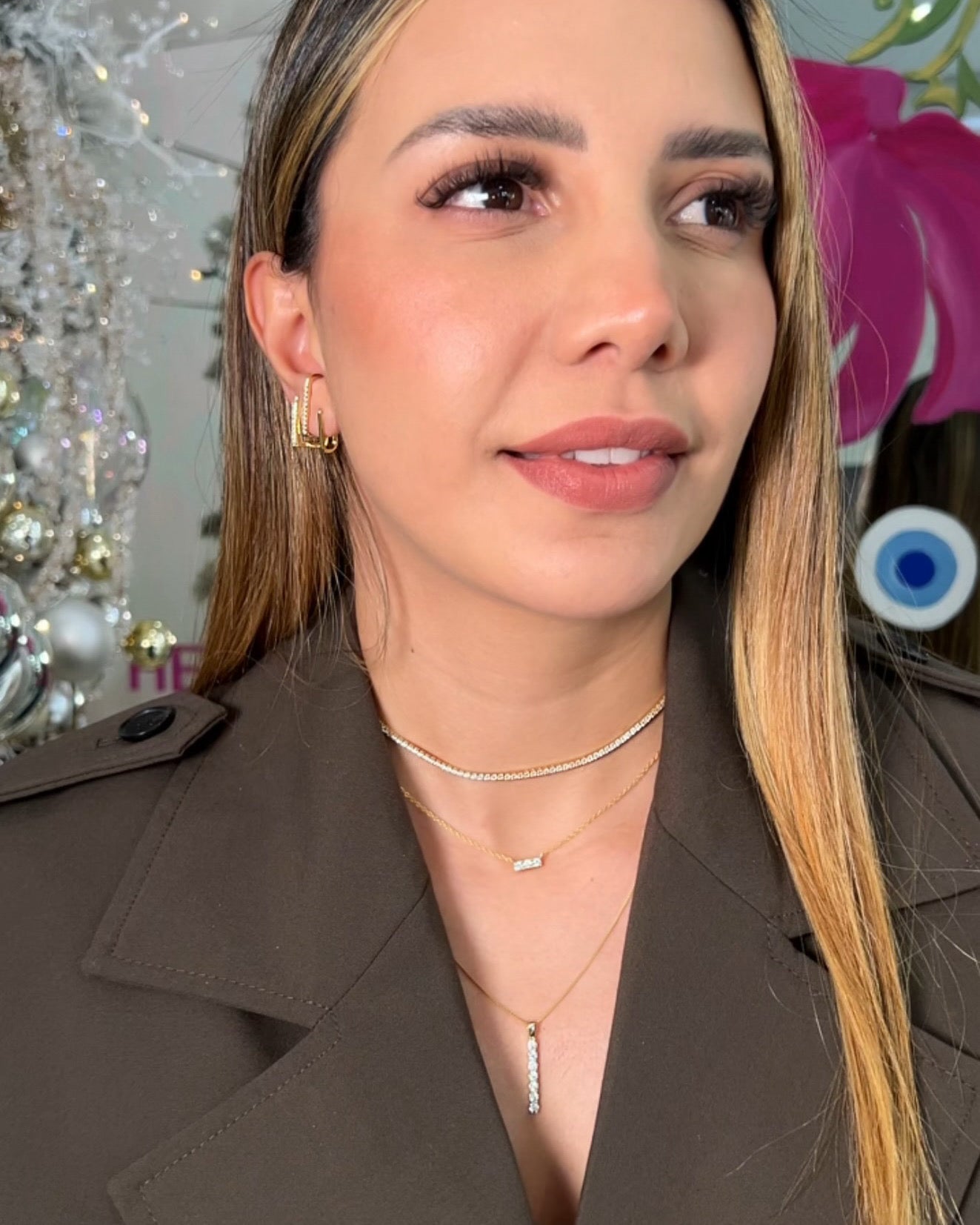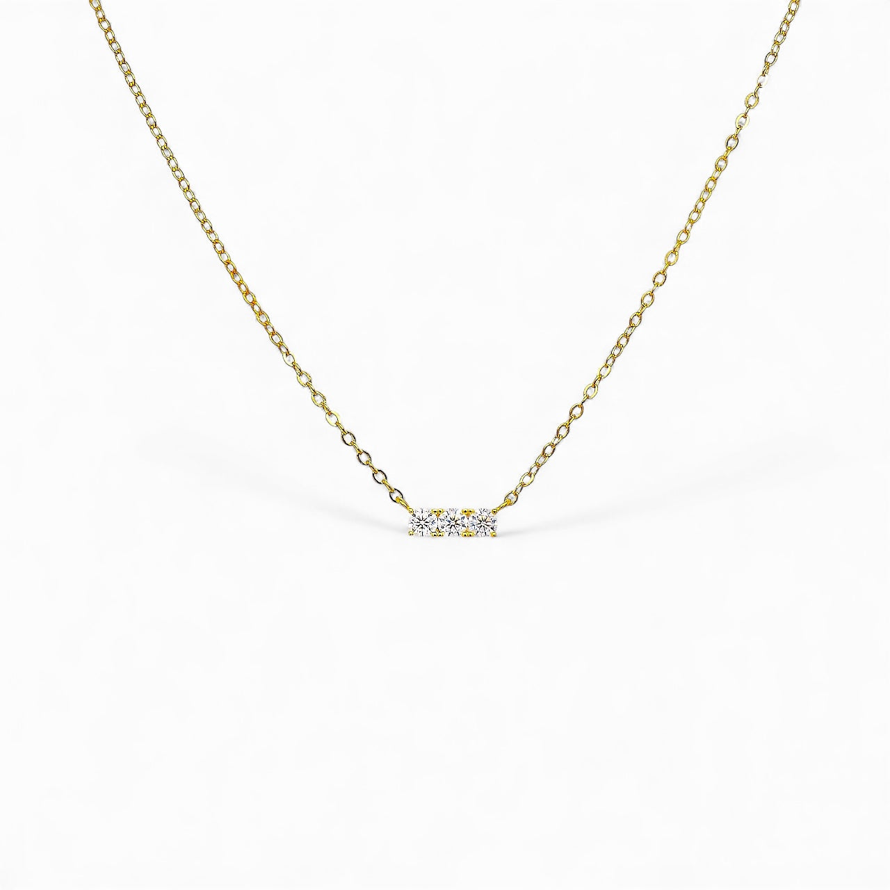 La Cadena Andy destaca por su diseño minimalista y tres Moissanitas centrales que encantan con un brillo nítido y elegante.