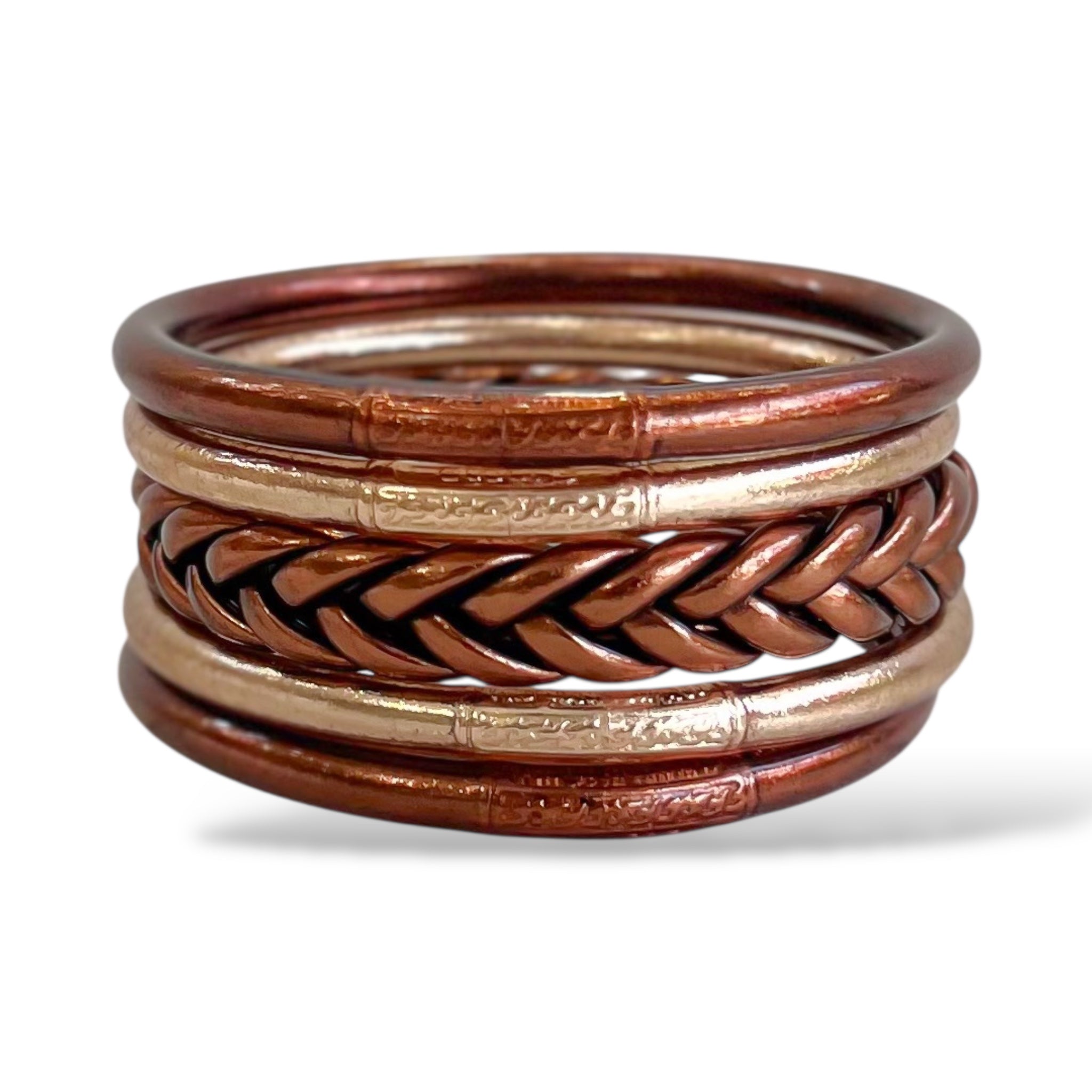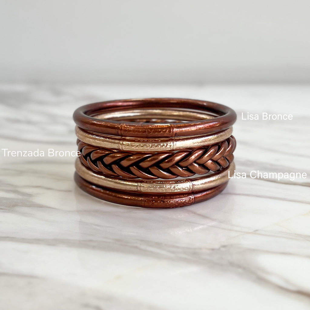 Set 5 Pulseras Budistas Champagne + Bronce
