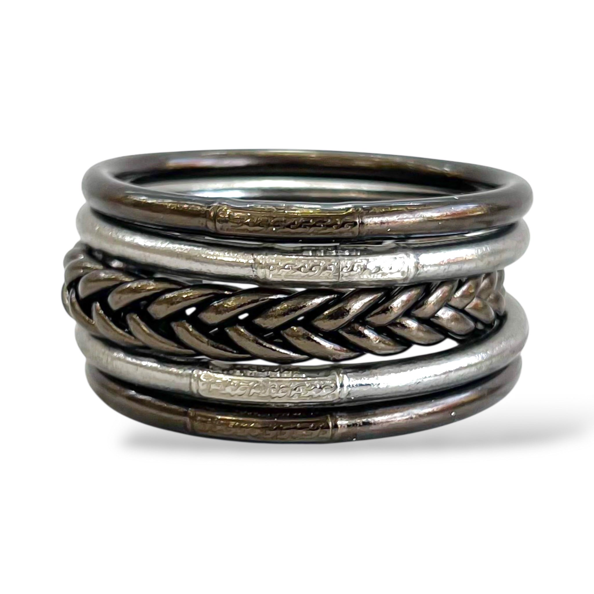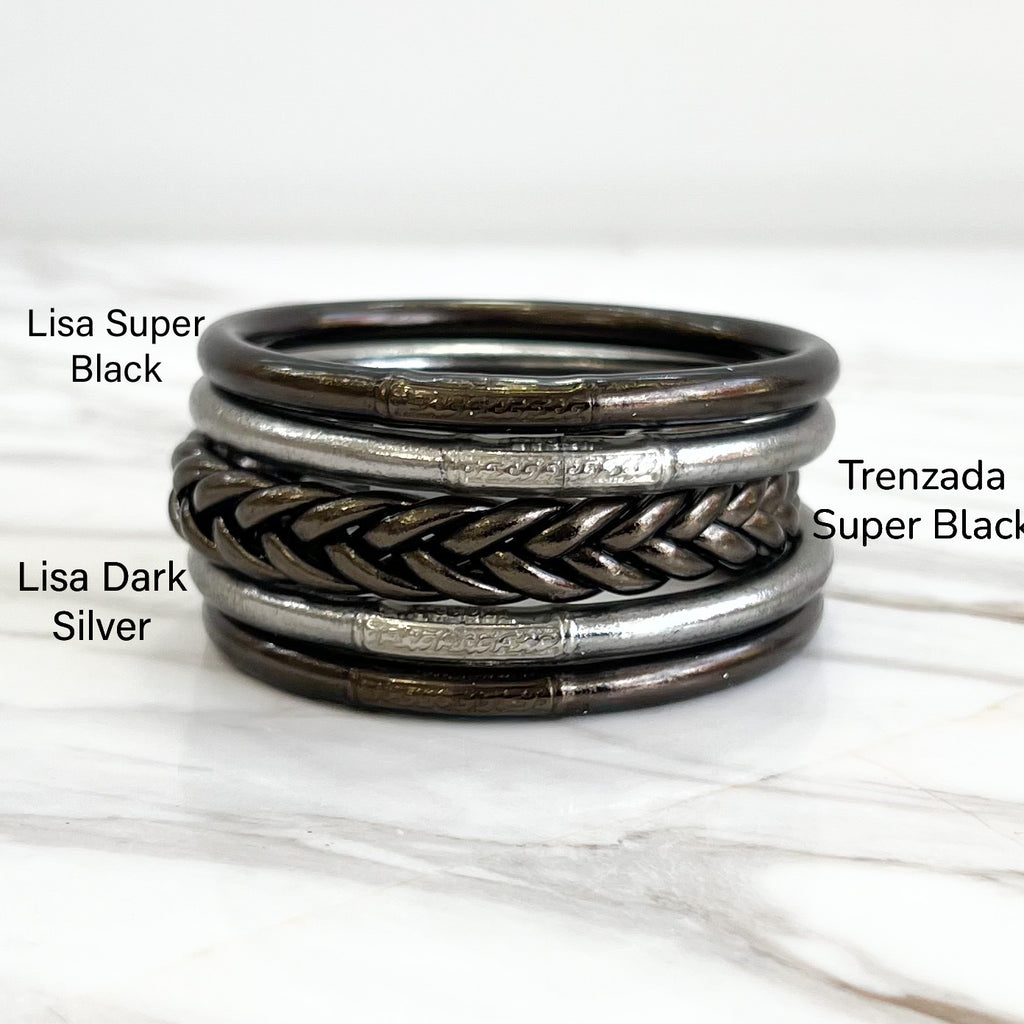 Set 5 Pulseras Budistas Super Black+ Dark Silver