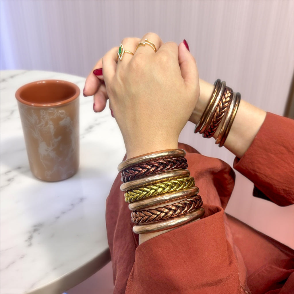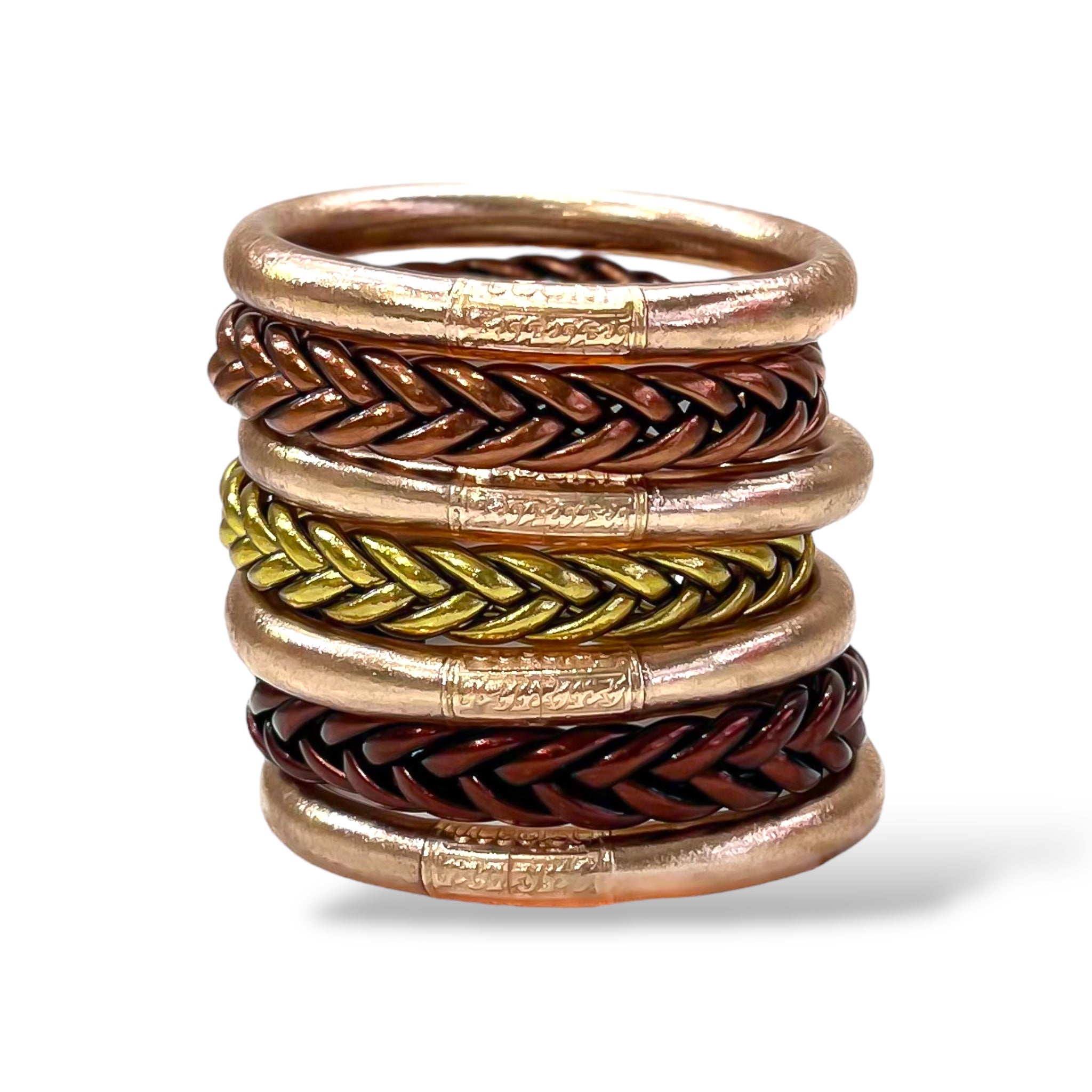 Set 7 Pulseras Budistas Chunky Champagne+Bronce+Café+Deep Gold