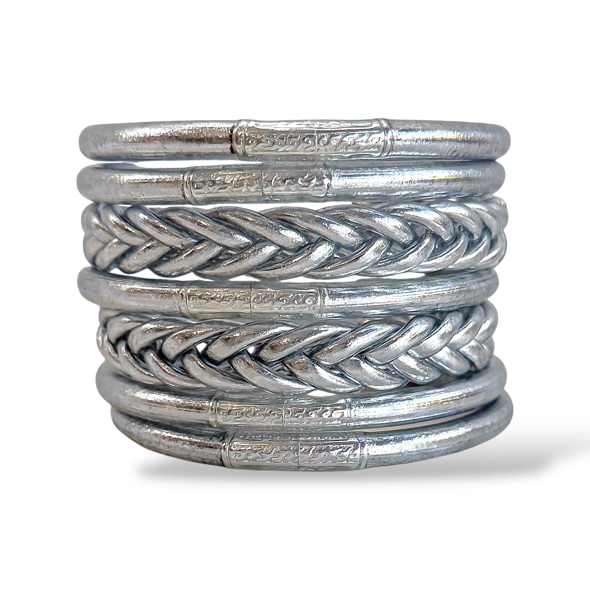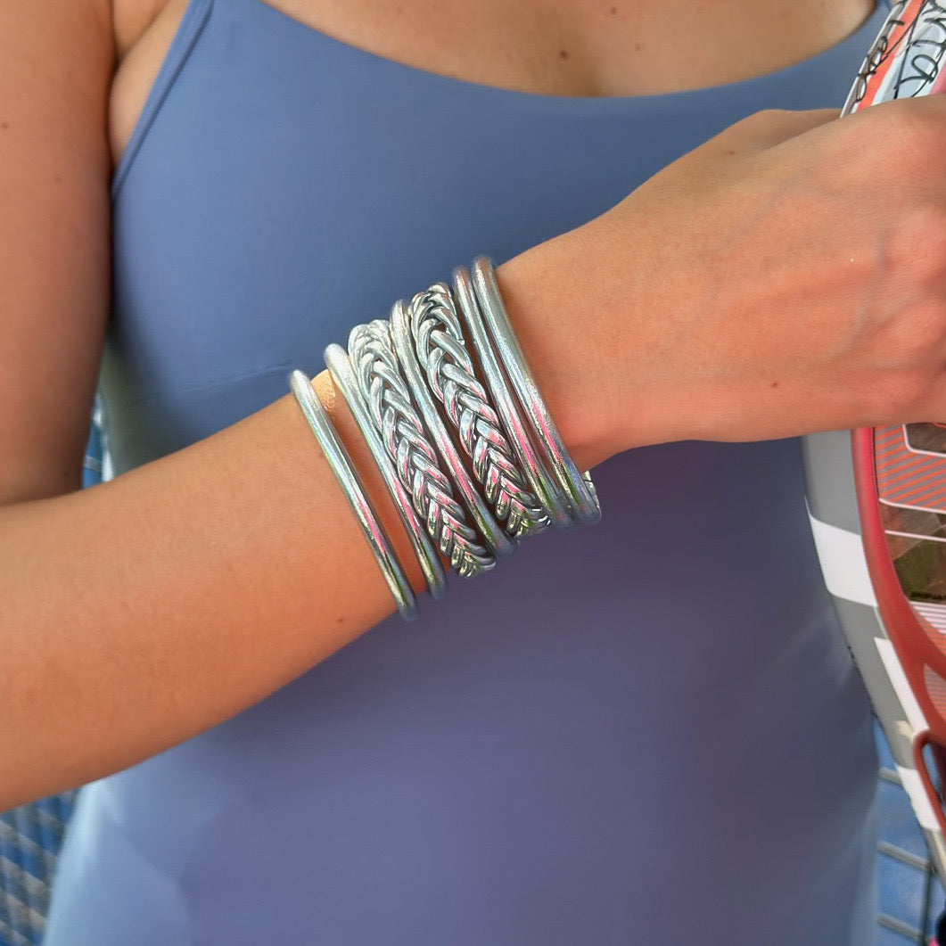 - 5 pulseras budistas lisas plateada