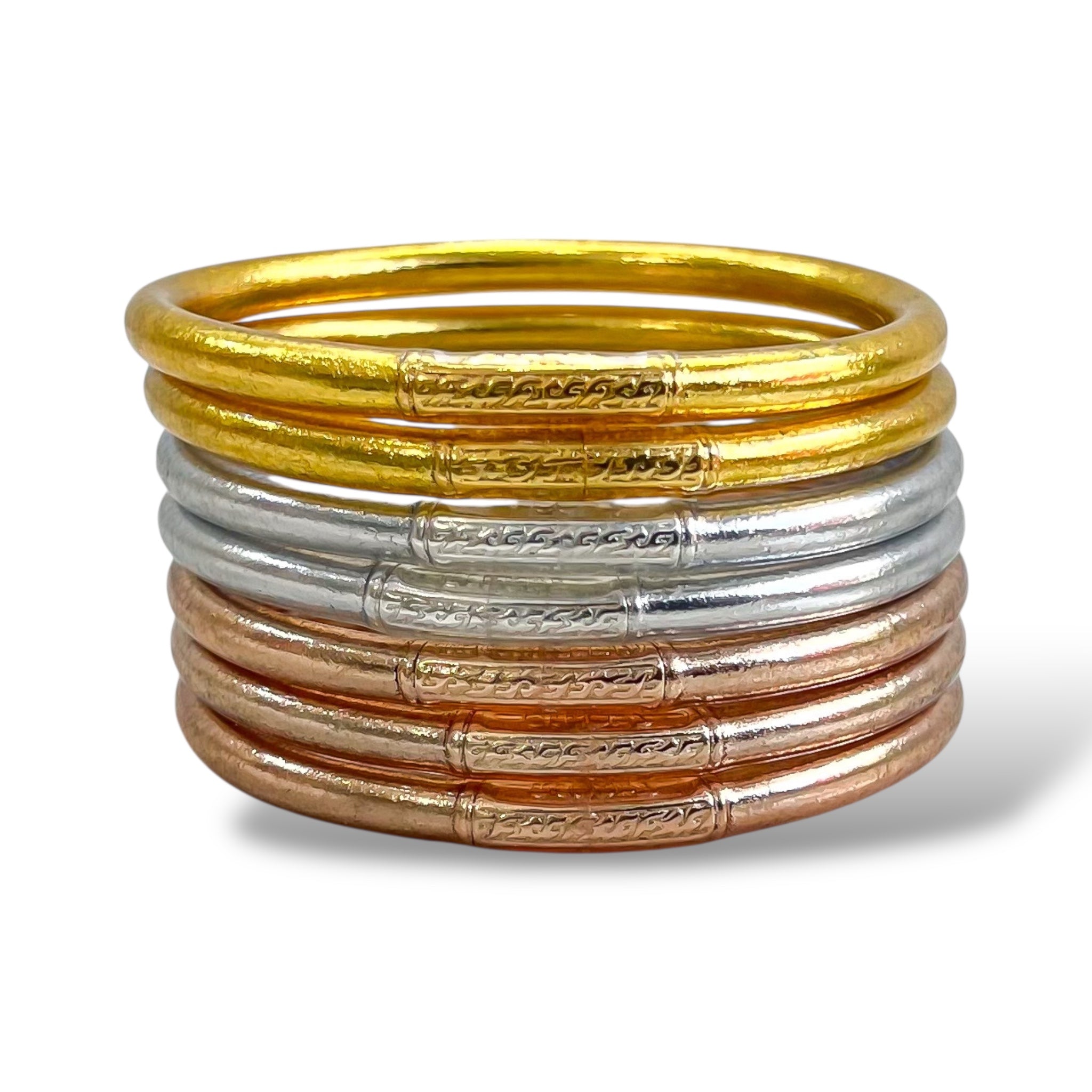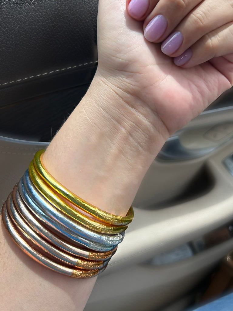 Las Pulseras Pan de Oro son muy cómodas de llevar debido a su flexibilidad y ligero peso. Son totalmente silenciosas, por lo que puedes llevar varias a la vez.