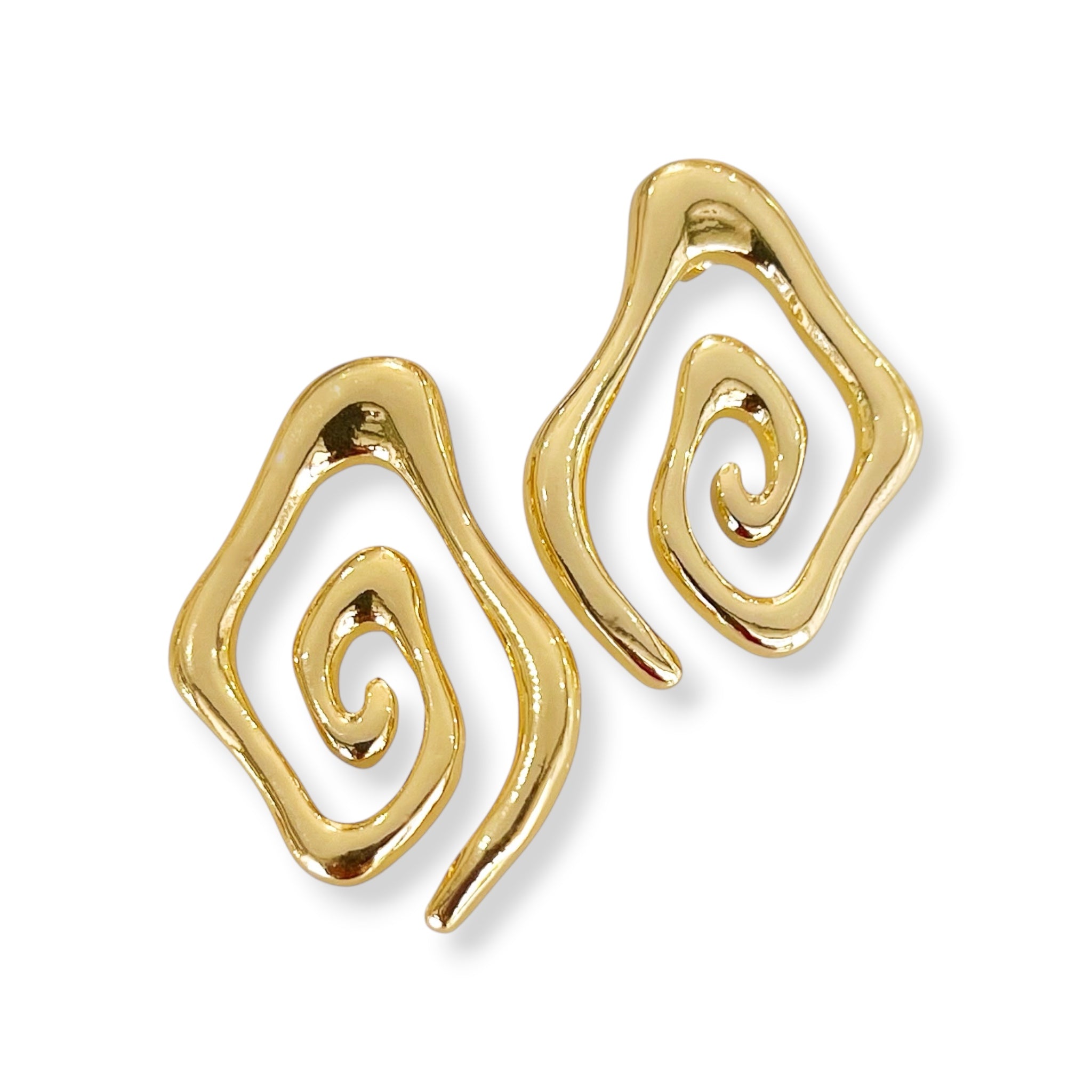 🐚✨ Lleva la esencia relajada y chic de Tulum a tu look diario. Estos aretes en chapa de oro destacan por su diseño orgánico y sus líneas fluidas que crean un espiral único. Son ligeros, cómodos y perfectos para darle un aire boho-trendy a cualquier outfit, desde tu vestido de lino hasta tu blazer favorito.