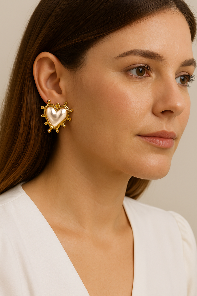 Una versión moderna del clásico corazón 🤍reinventada con el brillo suave de la madre perla —el material estrella de la temporada✨ Su diseño dorado con forma de corazón radiante refleja feminidad, elegancia y ese toque romántico que va con todo.