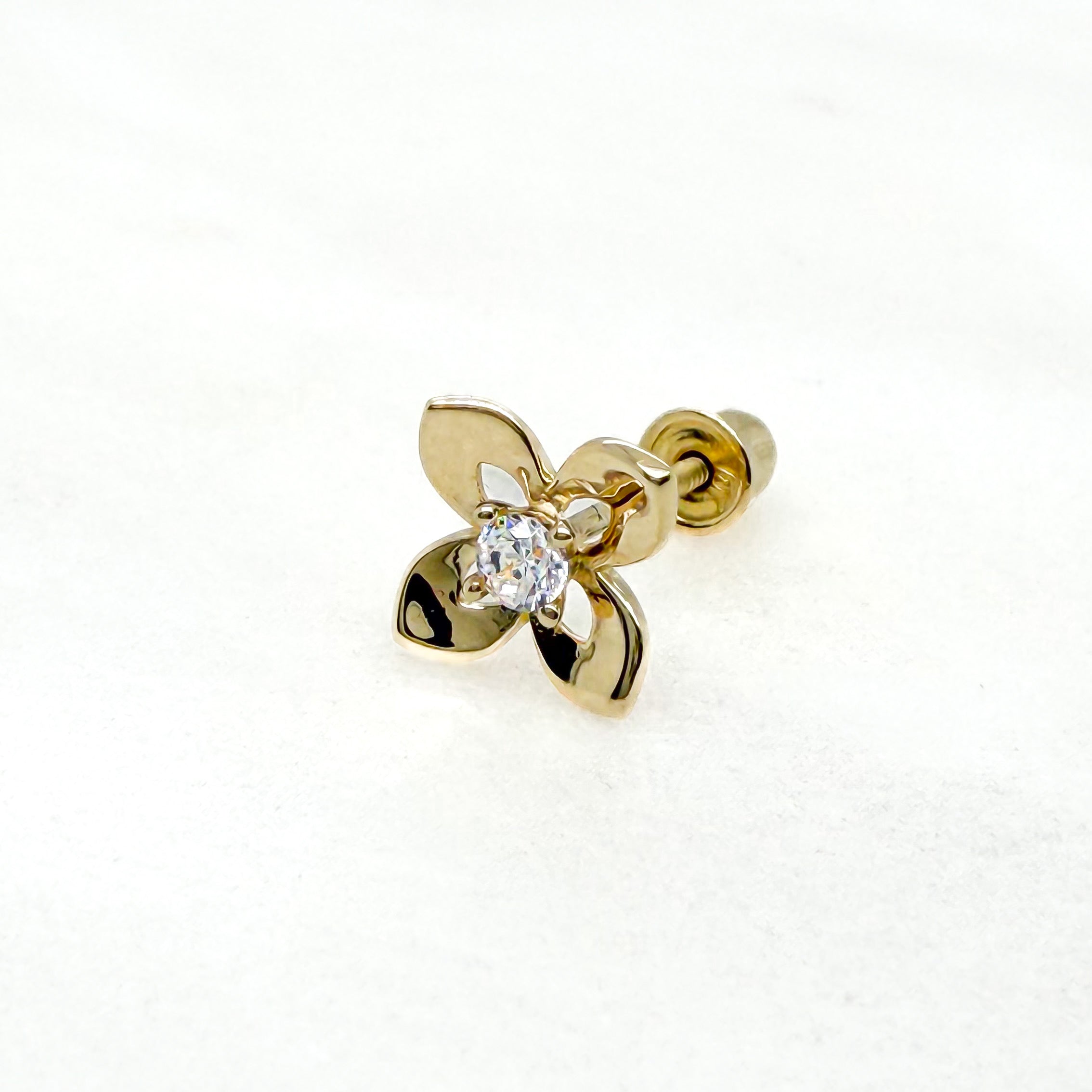 BROQUEL FLOR PÉTALOS CENTRO ZIRCONIAS ORO 10K