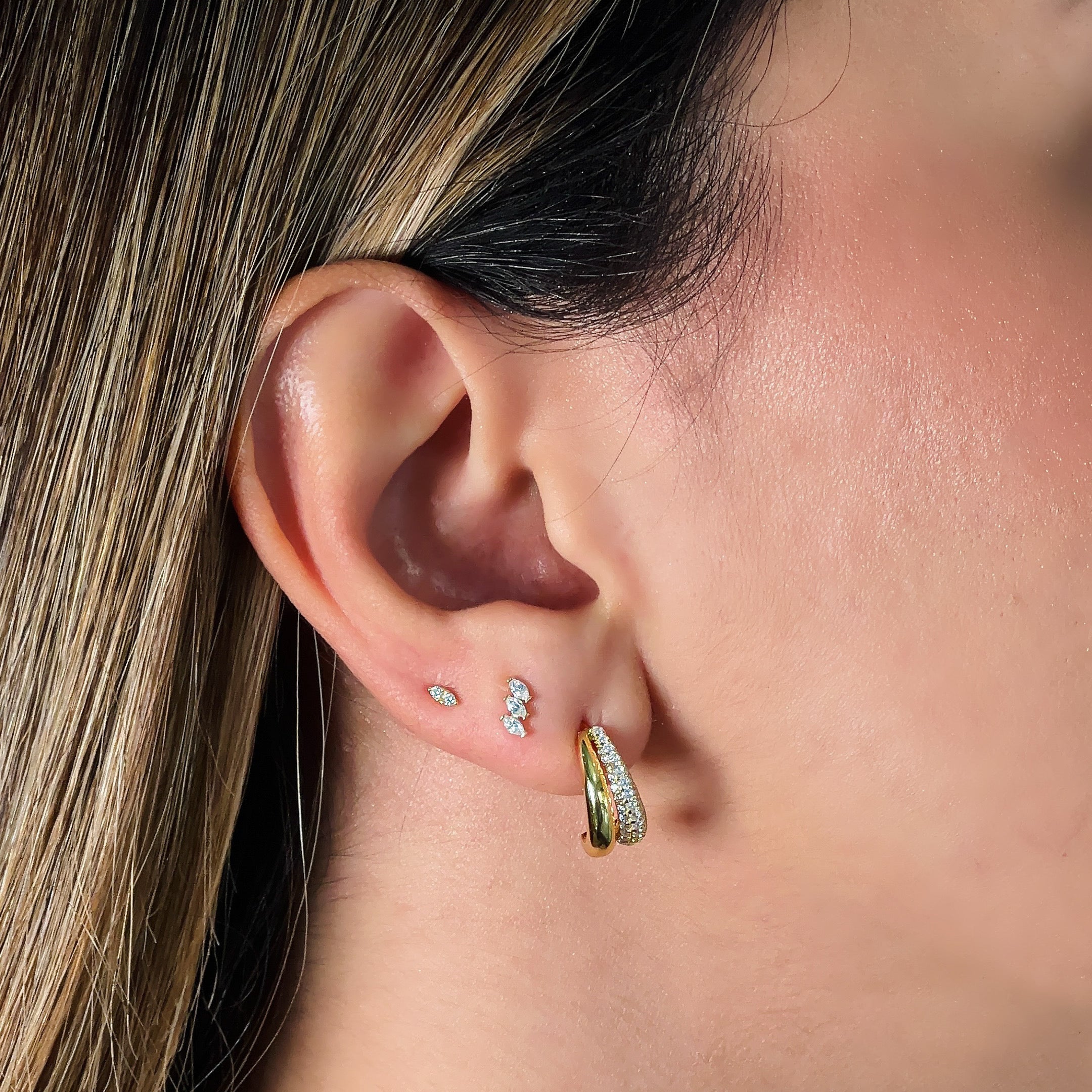 La mezcla de moissanitas cuidadosamente engastadas y la silueta gruesa estilo “statement” crea un efecto súper favorecedor. Hechos en plata fina .925 con chapa de oro: un brillo duradero que levanta hasta el outfit más simple. ✨