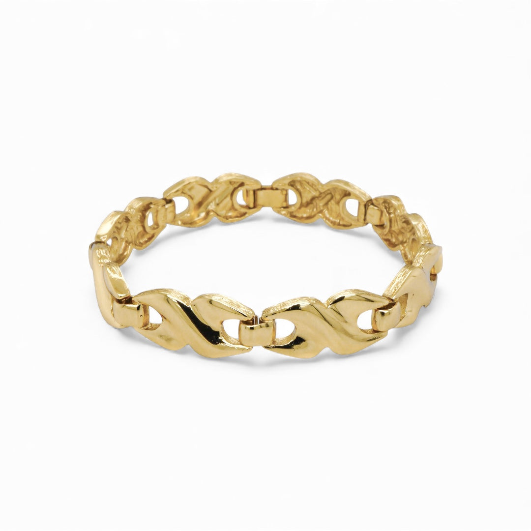 La Pulsera Maelis es la joya perfecta para quienes aman el estilo audaz pero femenino. Su diseño se compone de eslabones entrelazados que recuerdan al símbolo de un infinito curvo, ¡lleno de significado y personalidad!